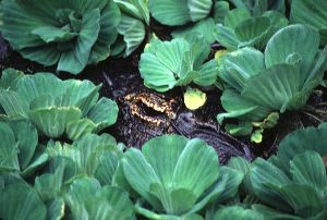 you can't see it in this picture, a caiman (and its cousin the alligator)
